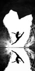 Dette slående sort-hvide kunstværk viser en ballerina, der springer yndefuldt inde i en hjerteformet hule, med spejlbilledet reflekteret i stille vand. Den dramatiske silhuet forener dans, natur og romantik og skaber et kraftfuldt visuelt udtryk for passion, elegance og tidløs kunstnerisk skønhed.