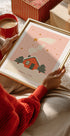 En hyggelig vinterstemning breder sig i et snedækket landskab, hvor en lille hytte gløder varmt i mørket, og stjernerne blinker over trætoppene. Plakaten indfanger julens magi med stille snefnug, spor i sneen og et strejf af eventyr, der vækker nostalgien og inviterer til ro og nærvær. Perfekt til at bringe juleglød ind i hjemmet.