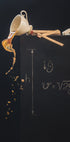 Dette kreative stilleben forener videnskab og kunst, med en kaffekop, der vælter i luften ved siden af en tavle med ligninger om frit fald. Ved at blande bevægelse, matematik og hverdagens genstande skabes et humoristisk og tankevækkende kunstværk, der fejrer nysgerrighed, fysik og idéernes skønhed.
