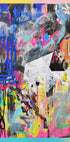 En markant eksplosion af farver og teksturer, denne abstrakte plakat blander dristige penselstrøg, dryppende maling og lagdelte graffiti-inspirerede detaljer. Med neonpink, elektrisk blå og livlige gule farver mod mørkere kontraster skaber den et råt og energisk statement—perfekt til moderne interiører og samtidskunst-elskere.