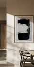 En markant monokrom abstrakt plakat med fejede sorte og hvide penselstrøg, lagdelt med subtile linjedetaljer. De stærke kontraster og teksturerede overflader skaber en minimalistisk, men kraftfuld komposition—perfekt til moderne interiører, skandinavisk design eller samtids gallerivægge.