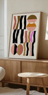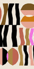 Dette abstrakte geometriske kunstværk viser dristige former og jordnære toner i kontrast med pink og sort på en ren hvid baggrund. Inspireret af Bauhaus-æstetik kombinerer kompositionen balance, rytme og moderne minimalisme, og skaber et markant værk, der løfter ethvert moderne interiør.