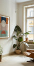 Denne abstrakte geometriske plakat viser en moderne komposition af cirkler og rektangler i jordfarver som terrakotta, marineblå, blush og salviegrøn. Med en minimalistisk mid-century æstetik kombinerer den balance og varme, og bliver et stilfuldt vægkunstværk til moderne interiører.