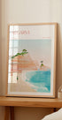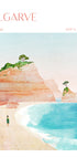 En lys og inspirerende plakat af Algarve, Portugal, der viser gyldne klipper, turkisblåt hav og en fredelig strandtur. Med bløde pastelfarver og kystcharme fanger dette kunstværk essensen af sommerferier, europæisk skønhed og rolige kystlandskaber.