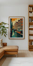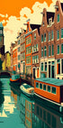 Taudalpois Amsterdam Canal Houses indfanger charmen ved byens smalle gavlhuse langs kanalen. Varme orange toner spejler sig i vandet, mens både og cykler antyder rolig bevægelse gennem de historiske gader. En nostalgisk rejseplakat med grafisk klarhed og moderne vintage-stemning. Perfekt til elskere af Amsterdam og nordisk bypoesi.