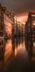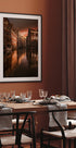 Amsterdam Evening af Luca Rebustini skildrer skumringens ro over byens kanaler. Smalle gavlhuse står skulder ved skulder, spejlet i det mørke vand, mens varme vinduer og brostensgader antyder liv bag facaderne. En stemningsfuld hyldest til Amsterdams tidløse arkitektur. Perfekt til at bringe rejseminder og nordisk melankoli ind i rummet.