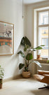 En stemningsfuld Amsterdam-plakat, hvor en rolig kanal spejler byens ikoniske, smalle gavlhuse. En cyklist glider over en elegant bro, omgivet af grønne træer og bløde efterårsfarver. Den rene, grafiske komposition indfanger byens rytme, poesi og frihed. Illustration af Nicholas, perfekt til elskere af cykler, kanaler og klassisk bycharme.