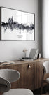 Amsterdam som du aldrig har set det: en stiliseret, sort-hvid akvarel-skyline af Michael Tompsett. De ikoniske kanaler, smalle gavlhuse og tårne smelter sammen i en luftig silhuet på hvid baggrund. Et moderne, urbant blik på byens historie – rolig, grafisk og uimodståeligt nordisk. Perfekt til nordisk minimalisme og rejsedrømme.