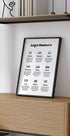 En moderne motiverende typografi-plakat, der viser betydningen af engletal fra 111 til 999, hvert forbundet med intuition, balance, støtte, beskyttelse, forandring, refleksion, held og nye begyndelser. En spirituel og inspirerende vægkunst perfekt til manifestation, mindfulness og positiv energi.