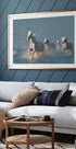 Et kraftfuldt fotografi af de vilde hvide heste i Camargue, fanget mens de galopperer gennem bølgerne. Vanddråber glimter i luften og fremhæver deres styrke, bevægelse og vilde ånd. Denne betagende scene udtrykker frihed, energi og naturens tidløse skønhed.