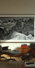 Et betagende sort-hvidt fotografi af en bjergbestiger, der står på en smal sne-ryg i de franske alper. Den dramatiske udsigt indfanger takkede tinder, dybe dale og gletsjere, der strækker sig mod horisonten. En stærk hyldest til eventyr, udholdenhed og de alpine landskabers skønhed.