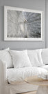 En betagende plakat af en hvid påfugl med fjerene fuldt udfoldet, der udstråler renhed og ynde. Den slående komposition indfanger fuglens majestætiske skønhed i rolige detaljer og vækker en følelse af fantasi og engleagtig elegance. Et blikfang, der forener naturens vidundere med kunstnerisk raffinement.