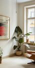 En markant Bauhaus Ausstellung-plakat fra 1923, med dristige røde og sorte geometriske cirkler arrangeret i et rytmisk mønster. Dette vintage-design afspejler Bauhaus-bevægelsens fokus på form, farve og funktion. En perfekt kombination af kunst og historie, ideel til retro- og moderne interiører.