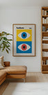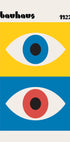 En markant Bauhaus-inspireret plakat med to stiliserede øjne i stærke farveblokke af gult, blåt, rødt og sort. Dette abstrakte design fanger essensen af Bauhaus 1923, med en kombination af minimalistiske former og markante kontraster. Perfekt til dem, der elsker vintage, ikonisk og modernistisk design.