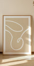 En moderne, minimalistisk plakat med hvide flydende linjer på en blød beige baggrund. Det abstrakte design giver enkelhed, balance og elegance til ethvert rum.