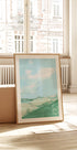 Et blødt abstrakt landskabsmaleri med grønne bakker og en stor blå himmel med lette skyer. Inspireret af det engelske landskab og Dartmoor giver dette akvarel-lignende kunstværk en rolig og luftig atmosfære til ethvert rum. Perfekt til naturelskere og dem der ønsker fredelig vægkunst.