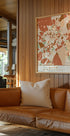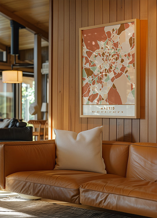 Black Maps Earth Tones 44 fanger Madrids urbane puls i et grafisk kortværk af Emiliano Deificus. Sorte linjer og jordfarvede flader afslører byens gadenet, kvarterer og rytme i et stilrent, moderne udtryk. En sofistikeret hyldest til storbyen, der skaber rolig dybde og visuel balance på væggen. Perfekt som fokuspunkt i stuen eller på kontoret.