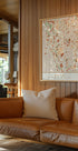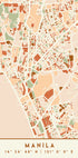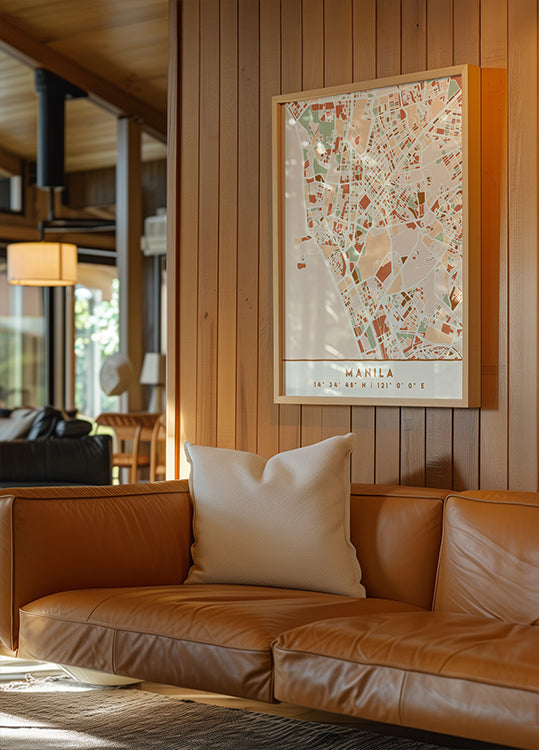Black Maps Earth Tones 46 af Emiliano Deificus forvandler byens pulserende struktur til en sofistikeret, grafisk komposition. I dybe sorte flader og jordnære nuancer tegner gader og kvarterer sig som et elegant net, hvor bredde- og længdegrader antyder retning og rytme—en rolig hyldest til Manila. Byens sjæl i minimalistisk form.