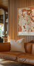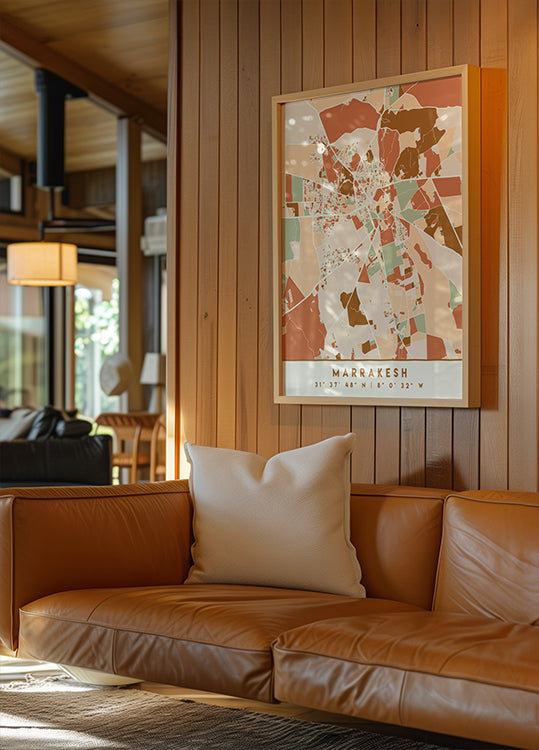 Black Maps Earth Tones 47 af Emiliano Deificus udfolder en stemningsfuld, grafisk bykortvision i varme jordtoner. Organiske teksturer møder skarpe gadegrid og antydede koordinater, der vækker billeder af Marrakeshs labyrinter og Nordafrikas rytme. Et sofistikeret, roligt fokuspunkt til moderne rum!