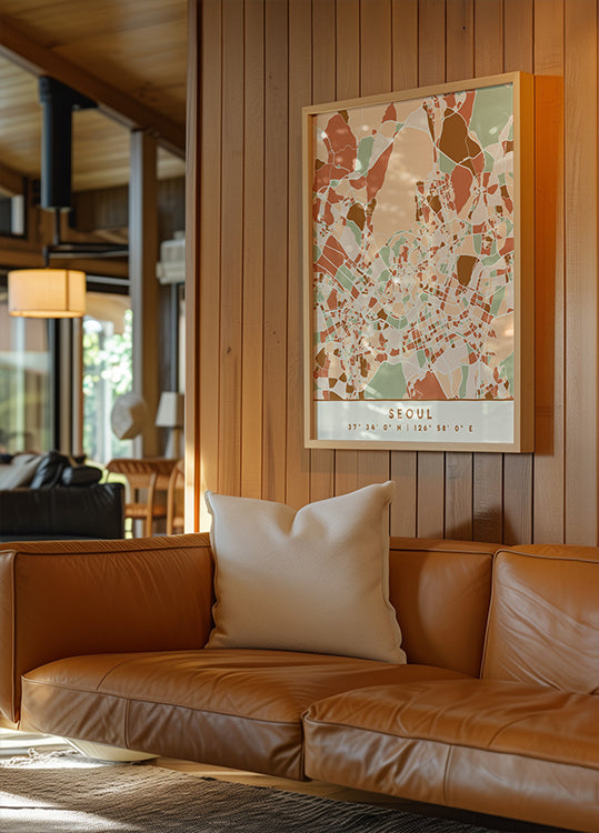 Et elegant, mørkt kort over Seoul i jordfarver, hvor byens gadenet, kvarterer og konturer træder frem i detaljeret grafik. Den dæmpede palet giver et roligt, moderne udtryk, der passer til både stue og kontor. En del af serien Black Maps Earth Tones, skabt af Emiliano Deificus. Perfekt til kortelskere og urbane interiører.