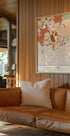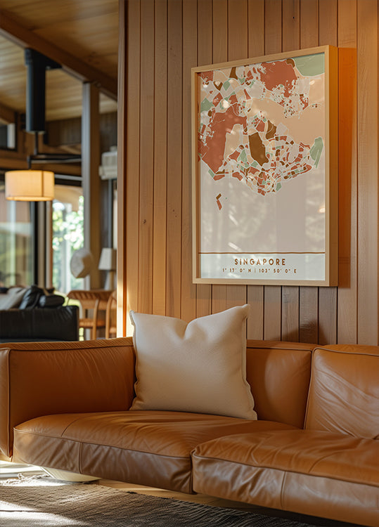 Black Maps Earth Tones 81 af Emiliano Deificus indfanger byens rytme som et poetisk kortbillede i sorte nuancer og jordtoner. Fine gadelinjer, blokke og kystkonturer danner et abstrakt mønster, hvor kontrasten mellem matte mørke flader og varme toner skaber dybde, retning og stille intensitet. I blikket opstår et grafisk, tidløst overblik.