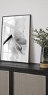 Et iøjnefaldende sort-hvidt fotografi, der indfanger de fine teksturer og detaljer i en blomstrende blomst. Den minimalistiske komposition fremhæver blomsternes naturlige elegance og er et raffineret valg til moderne, landlige eller gårdinspirerede interiører.