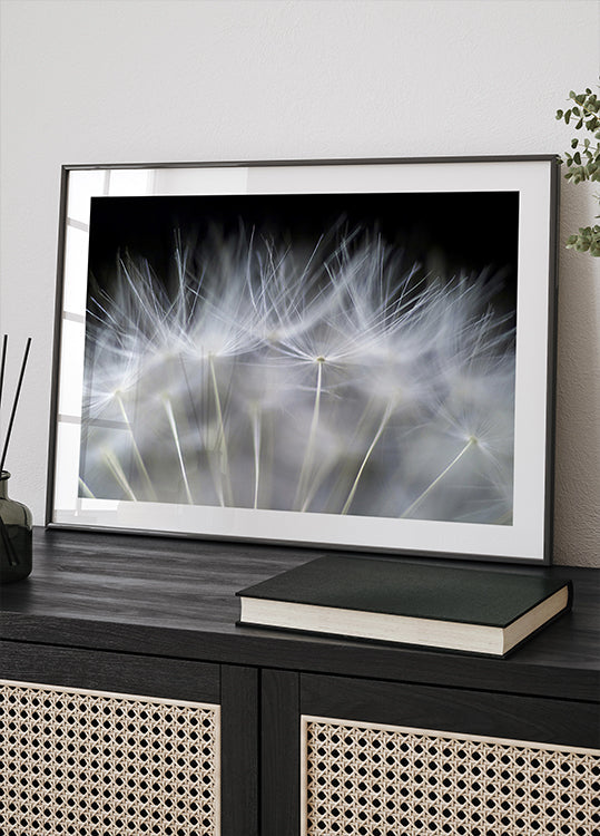 Et delikat makrofotografi af mælkebøttefrø, der indfanger deres fjerlette blødhed og skønhed. Nærbilledet fremhæver den skrøbelige og flygtige natur i disse luftige totter.