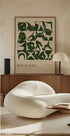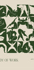En markant figurativ plakat af Arty Guava (2024), med dristige abstrakte kropsformer i dyb grøn på beige baggrund. Kunstværket udforsker form, bevægelse og menneskeligt udtryk i en moderne grafisk stil.
