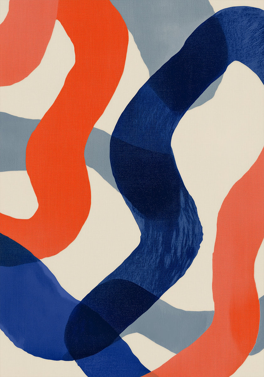 Bold Line Art forener dybe navyblå nuancer med varm orange på en blød beige baggrund. Dristige penselstrøg og elegante linjer skaber rytme, balance og bevægelse, hvor kontrasten mellem ro og energi træder tydeligt frem. Et moderne, grafisk statement til stue, kontor eller gallerivæg. Inspireret af nordisk minimalisme.