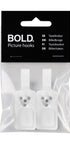 Bold Picture Hook inkluderer to e-handelspakker (hver med 2 kroge) og én butiksdisplaypakke. Dette er verdens første billedkrog, der er kompatibel med alle typer rammer og vægmaterialer – uanset om det er beton, gipsplader eller træ. Den monteres på få sekunder med en hammer – helt uden boring, rawlplugs eller skruer.