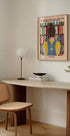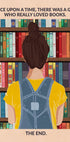 En charmerende illustrationsplakat af en pige, der står foran en farverig bogreol, og fejrer sin kærlighed til bøger. Den legende typografi lyder “Once upon a time, there was a girl who really loved books. The end.” Perfekt gave til bogelskere og en inspirerende detalje til biblioteker, læsehjørner og hyggelige hjem.
