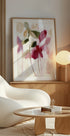 En poetisk, abstrakt botanisk komposition, hvor violette og gyldne nuancer mødes i bløde penselstrøg. Blomster og blade synes at svæve i let bevægelse, med sarte rosa og grønne accenter. Et moderne, elegant blikfang til hjemmet – skabt af kunstneren Janel Bragg. Perfekt til stue, soveværelse eller kreative rum.