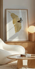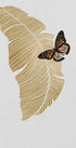 Et raffineret minimalistisk kunstværk med et gyldent palmeblad og en delikat detaljeret monark-sommerfugl. Den rene komposition kombinerer tropisk elegance med naturlig symbolik, hvilket gør det til et tidløst botanisk motiv perfekt til moderne eller rustikke interiører.