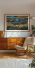 Et betagende luftfoto af Californiens ørkenlandskab, der viser naturens kunstneriske strømme og deltaer over sandklitterne. De indviklede årelignende mønstre i blåt og guld skaber et abstrakt mesterværk, hvor jord og vand forenes i harmoni. Et slående fotografisk vægkunstværk til moderne interiør.