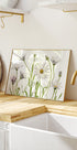 Et blødt og elegant nærbillede af to Cape-margeritter, med delikate hvide kronblade der folder sig omkring dybblå og orange centre. Med en drømmende sløret baggrund fremhæver dette kunstværk naturens skrøbelige skønhed og tidløse charme.