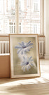 Et friskt og lyst botanisk kunstværk med Cape-margeritter i fuldt flor. Med delikate hvide kronblade med et blødt lilla skær, sat mod slanke grønne stilke, fanger denne højlyse blomsterkomposition essensen af sommerhaver. Perfekt til at tilføje et naturligt og elegant præg til ethvert rum.