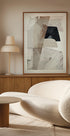 Et moderne abstrakt kunstværk med teksturerede lag og dristige penselstrøg i neutrale toner. Dette nutidige værk af Dan Hobday kombinerer minimalisme med malerisk dybde og gør det til en perfekt tilføjelse til moderne interiører og samlinger af abstrakt kunst.