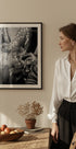 En sofistikeret sort-hvid plakat, der indfanger et øjeblik af fest med boblende champagneglas. Dette tidløse fotografi tilfører elegance og glamour til moderne hjem — ideelt til stue, bar eller spisestue.