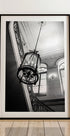 Et tidløst sort-hvidt fotografi, der indfanger elegancen i et parisisk interiør, med en storslået lysekrone hængende over en svungen trappe. De intrikate smedejernselementer og arkitektoniske detaljer fremhæver fransk sofistikation og kunstnerisk udtryk – perfekt til elskere af klassisk europæisk indretning.