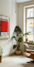 Et ikonisk abstrakt kunstværk af Piet Mondrian, skabt i 1930. Værket viser stærke farvefelter i rødt, blåt, gult og hvidt, adskilt af tykke sorte linjer, som repræsenterer Mondrians unikke stil med geometrisk abstraktion og balance.