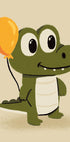 A cheerful and playful illustration of a cute crocodile holding an orange balloon. With its big, friendly eyes and soft textures, this artwork brings a sense of fun and lightness — perfect for kids’ rooms, playrooms, or spaces designed to inspire joy and imagination.