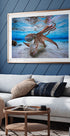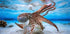 Et betagende undervandsfotografi af en blæksprutte, der bevæger sig yndefuldt over havbunden. Med sine snoede arme, mønstrede hud og det klare blå vand ovenover indfanger dette kunstværk havlivets skønhed og mysterium. Et markant kunstværk til havelskere og moderne interiør.
