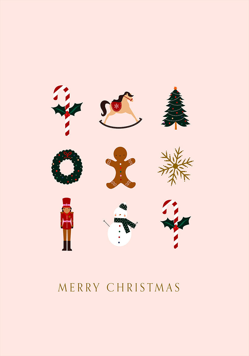 Bring julestemningen hjem med denne moderne plakat af Aislinn Simmonds: en stiliseret juletræskomposition med grafiske former, en stjerne i toppen og detaljer, der emmer af vinterhygge. Elegant typografi med en varm julehilsen fuldender udtrykket – perfekt til stue, entré eller gave. Farver og former balancerer mellem tradition og nutid.