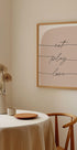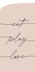 Eat Play Love er en minimalistisk typoplakat, hvor ordene danser i en elegant, håndskrevet kurve på en varm, neutral beige baggrund. Det luftige mellemrum skaber balance og ro, mens den legende rytme giver energi. Et stilrent blikfang til stue, køkken, kontor eller entré – alene eller i gallerivæg.