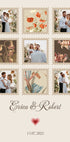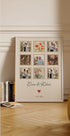 En romantisk og elegant fotocollage i bløde vintagefarver med frimærke-lignende rammer. Personligt tilpasset med navne og dato og et smukt minde om kærligheden og de uforglemmelige øjeblikke. Ideel som bryllupsminde, jubilæumsgave eller tidløs vægkunst.