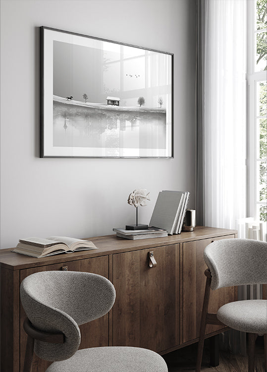Endless beginning af Hadi Malijani skildrer en drømmende vandring mod horisonten. En ensom silhuet bevæger sig gennem tåge og lag af skyer, mens fjerne bjerge anes i lyset. Kontrasterne mellem mørke og glød skaber ro og spænding på samme tid – en poetisk følelse af afsked og ny begyndelse. Perfekt til stille rum og store drømme.