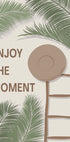 En forfriskende hyldest til det afslappede liv — denne sommerplakat prydes af det inspirerende citat “Nyd Øjeblikket”, omgivet af lette palmeblade, en rustik træstige og en klassisk solhat. De naturlige elementer og jordfarver skaber en let og luftig stemning — perfekt til at tilføre ethvert rum ferieessens og nærvær. Ideel til gallerivægge eller hyggelige kroge, der fortjener et strejf af tropisk ro.