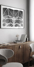 Enter the web af Linda Wride indfanger Santiago Calatravas ikoniske Oriente Station i Lissabon i dramatisk sort/hvid. Grafiske linjer og skarpe kontraster danner et web af rytme og dybde, hvor lys og skygge forvandler stålets struktur til poetisk geometri og trækker blikket mod centrum. En hyldest til moderne ingeniørkunst.