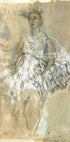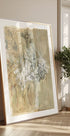 Ethereal Dancer by Ute Rathmann captures a poised ballerina mid-motion, sketched with airy lines, soft washes, and subtle collage. Neutral tones and a whisper of pastel evoke rehearsal hush, while the painterly texture and impressionist nod to Degas lend grace, intimacy, and timeless movement. Perfect for serene, modern spaces.