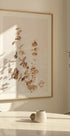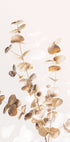 Et moderne botanisk kunstværk med eukalyptusgrene i funklende gyldne nuancer på en lys high-key baggrund. Dobbelt-eksponeringseffekten tilføjer dybde og elegance, hvilket gør det til et perfekt statement piece til minimalistiske, skandinaviske og moderne interiører.